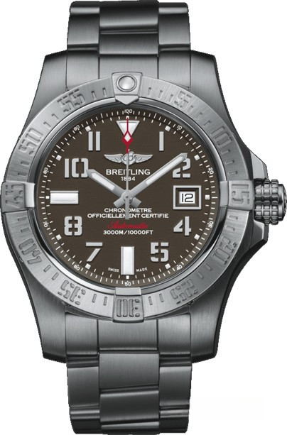 Мужские часы Avenger II Seawolf изготовлены в корпусе из нержавеющей стали размером 45 х 18.4 мм и водонепроницаемостью 3000 метров. На сером циферблате отображаются часы, минуты, секунды и дата. Апертура даты расположена на 3-х часах. Внутри корпуса установлен автоматический механизм Breitling 17 с запасом хода 40 часов. Безель часов вращающийся. Часы комплектуются браслетом из нержавеющей стали.