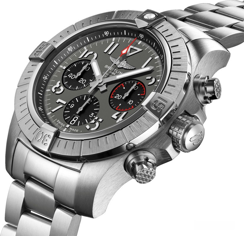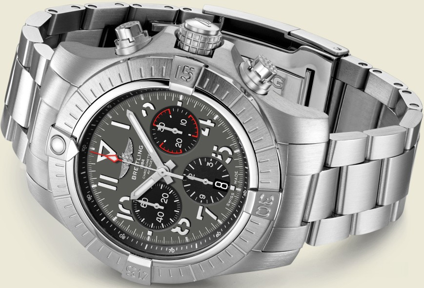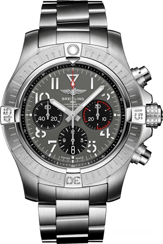 Часы Breitling Avenger B01 Chronograph 45 представлены в корпусе размером 45 х 15.7 мм из нержавеющей стали водонепроницаемостью 300 метров. Внутри корпуса установлен автоматический механизм, Калибр Breitling 01, обладающий запасом хода 70 часов. На сером циферблате отображаются часы, минуты, секунды, накопители хронографа. Часы поставляются на браслете из нержавеющей стали. Серия ограничена - 500 шт.