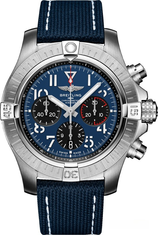 Часы Breitling Avenger B01 Chronograph 45 представлены в корпусе размером 45 х 15.7 мм из нержавеющей стали водонепроницаемостью 300 метров. Внутри корпуса установлен автоматический механизм, Калибр Breitling 01, обладающий запасом хода 70 часов. На синем циферблате отображаются часы, минуты, секунды, накопители хронографа. Часы поставляются на текстильномремешке с застежкой из нержавеющей стали. Серия ограничена - 500 шт.