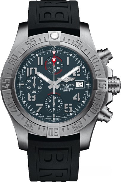 Мужские часы Avenger Bandit представлены в корпусе из титана размером 45 х 16.45 мм и водонепроницаемостью 300 метров. На синем циферблате отображаются часы, минуты, секунды, дата, накопители хронографа. Апертура даты расположена на 3-х часах. Внутри корпуса установлен автоматический механизм Breitling 13 с запасом хода 42 часа. Безель часов вращающийся. Часы комплектуются каучуковым ремешком с титановой вставкой.
