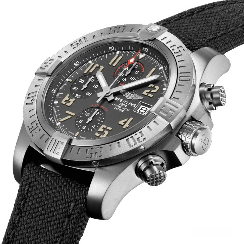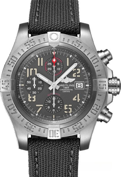 Мужские часы Avenger Bandit представлены в корпусе из титана размером 45 х 16.45 мм и водонепроницаемостью 300 метров. На сером циферблате отображаются часы, минуты, секунды, дата, накопители хронографа. Апертура даты расположена на 3-х часах. Внутри корпуса установлен автоматический механизм Breitling 13 с запасом хода 42 часа. Безель часов вращающийся. Часы комплектуются текстильным ремешком с титановой вставкой.