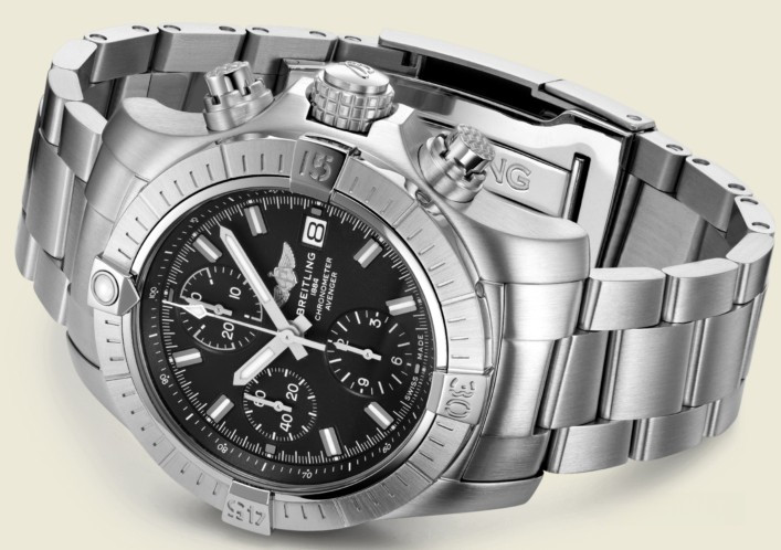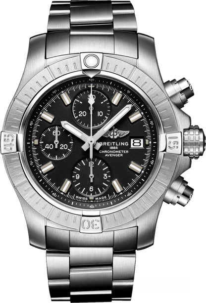 Часы Breitling Avenger Chronograph 43 mm представлены в корпусе из нержавеющей стали размером 43 мм и водонепроницаемостью до 300 метров. Внутри корпуса установлен автоматический механизм, Калибр Breitling 13 с запасом хода 48 часов. На черном циферблате отображаются часы, минуты, секунды, дата. Часы комплектуются браслетом из нержавеющей стали.