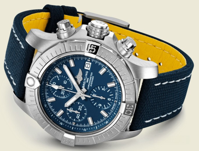 Часы Breitling Avenger Chronograph 43 mm представлены в корпусе из нержавеющей стали размером 43 мм и водонепроницаемостью до 300 метров. Внутри корпуса установлен автоматический механизм, Калибр Breitling 13 с запасом хода 48 часов. На синем циферблате отображаются часы, минуты, секунды, дата. Часы комплектуются текстильным ремешком с вставкой из нержавеющей стали.