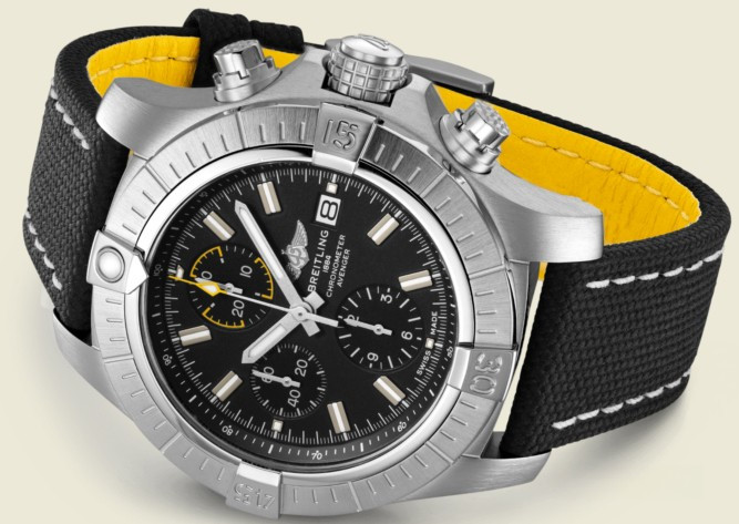 Часы Breitling Avenger Chronograph 45 mm представлены в корпусе из нержавеющей стали размером 45 мм и водонепроницаемостью до 300 метров. Внутри корпуса установлен автоматический механизм, Калибр Breitling 13 с запасом хода 48 часов. На черном циферблате отображаются часы, минуты, секунды, дата. Часы комплектуются текстильным ремешком с вставкой из нержавеющей стали.