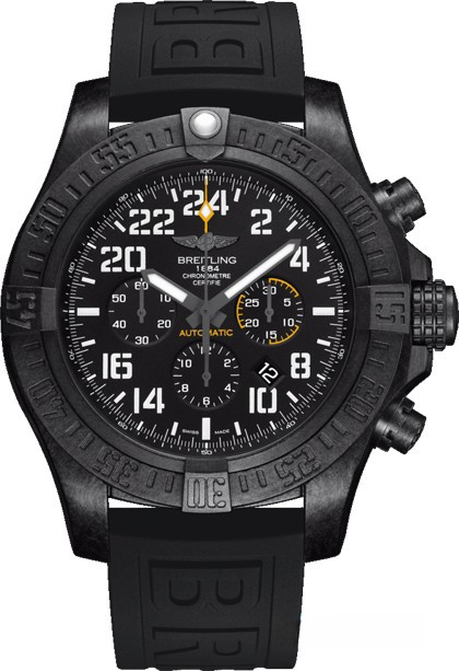 Мужские часы Avenger Hurricane изготовлены в корпусе из сплава Breitlight размером 50 х 16.95 мм и водонепроницаемостью 100 метров. На черном циферблате отображаются часы, минуты, секунды, дата, накопители хронографа. Апертура даты расположена между 4-мя и 5-ю часами. Внутри корпуса установлен автоматический механизм Breitling B12 с запасом хода 70 часов. Безель часов вращающийся. Часы комплектуются каучуковым ремешком с титановой вставкой.