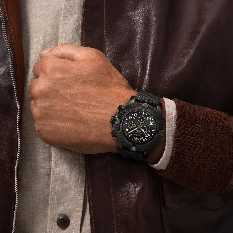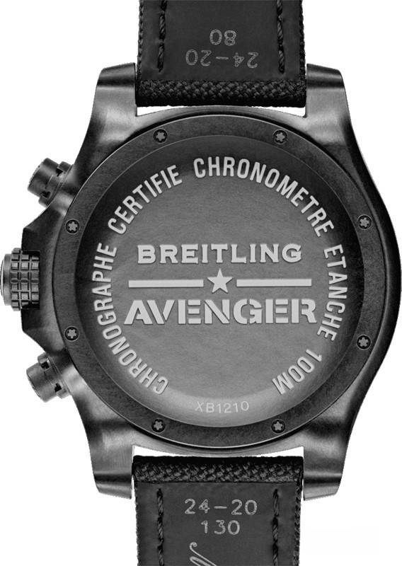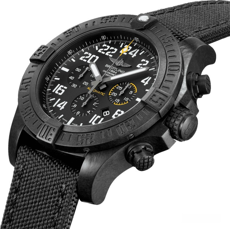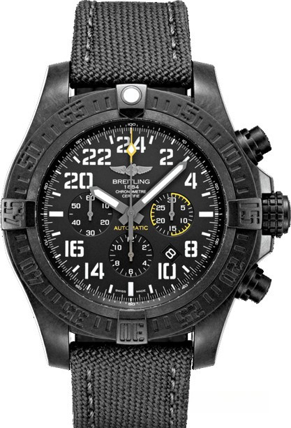 Мужские часы Avenger Hurricane изготовлены в корпусе из сплава Breitlight размером 50 х 16.95 мм и водонепроницаемостью 100 метров. На черном циферблате отображаются часы, минуты, секунды, дата, накопители хронографа. Апертура даты расположена между 4-мя и 5-ю часами. Внутри корпуса установлен автоматический механизм Breitling B12 с запасом хода 70 часов. Безель часов вращающийся. Часы комплектуются текстильным ремешком с титановой вставкой.