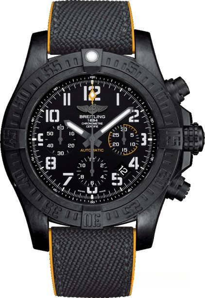 Мужские часы Avenger Hurricane 45 изготовлены в корпусе из сплава Breitlight размером 45 х 16.2 мм и водонепроницаемостью 100 метров. На черном циферблате отображаются часы, минуты, секунды, дата, накопители хронографа. Апертура даты расположена между 4-мя и 5-ю часами. Внутри корпуса установлен автоматический механизм Breitling 01 с запасом хода 70 часов. Безель часов вращающийся. Часы комплектуются текстильным ремешком с титановой вставкой.