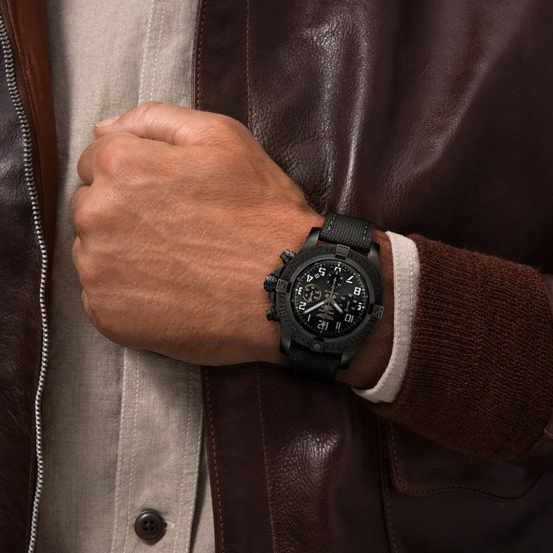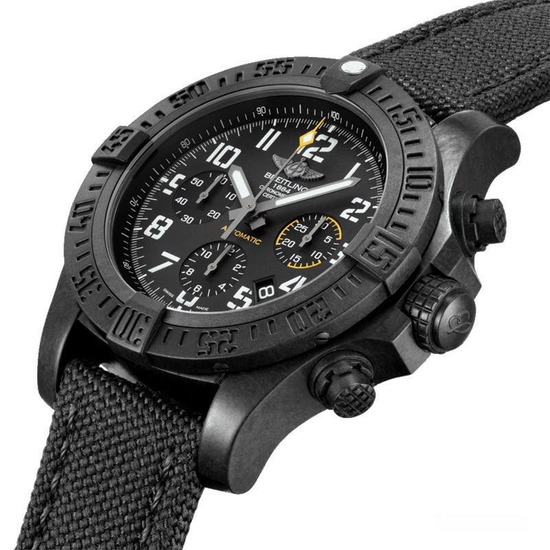 Мужские часы Avenger Hurricane 45 изготовлены в корпусе из сплава Breitlight размером 45 х 16.2 мм и водонепроницаемостью 100 метров. На черном циферблате отображаются часы, минуты, секунды, дата, накопители хронографа. Апертура даты расположена между 4-мя и 5-ю часами. Внутри корпуса установлен автоматический механизм Breitling 01 с запасом хода 70 часов. Безель часов вращающийся. Часы комплектуются текстильным ремешком с титановой вставкой.