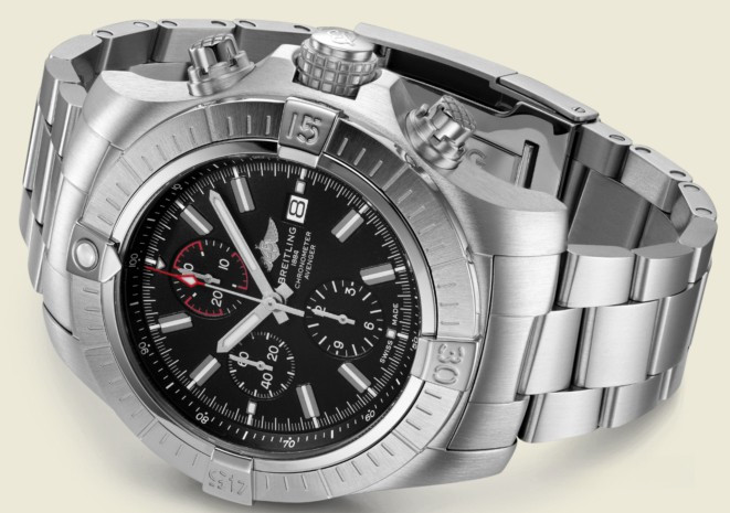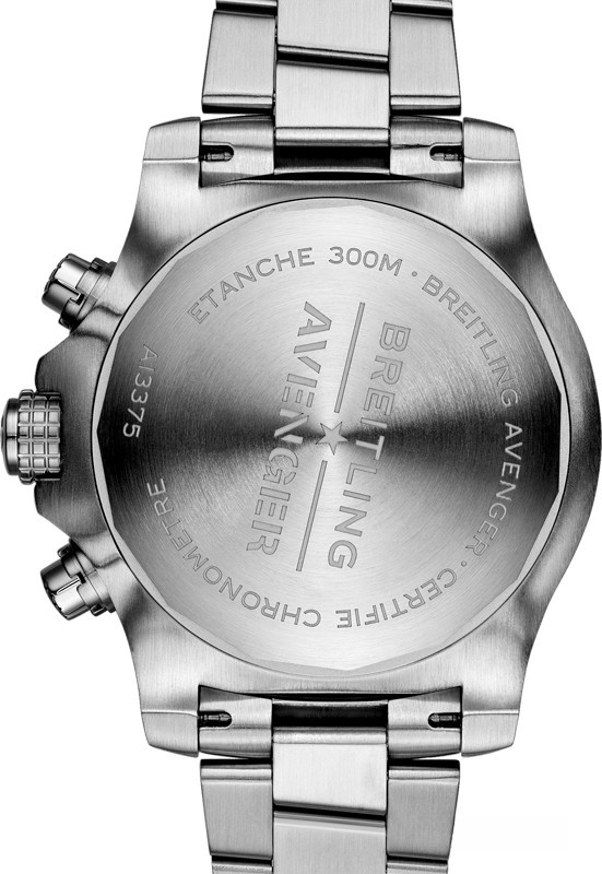 Часы Breitling Super Avenger Chronograph 48 mm представлены в корпусе из нержавеющей стали размером 48 х 17.73 мм и водонепроницаемостью до 300 метров. Внутри корпуса установлен автоматический механизм, Калибр Breitling 13 с запасом хода 48 часов. На черном циферблате отображаются часы, минуты, секунды, дата. Часы комплектуются браслетом из нержавеющей стали.