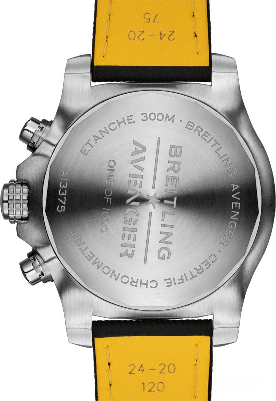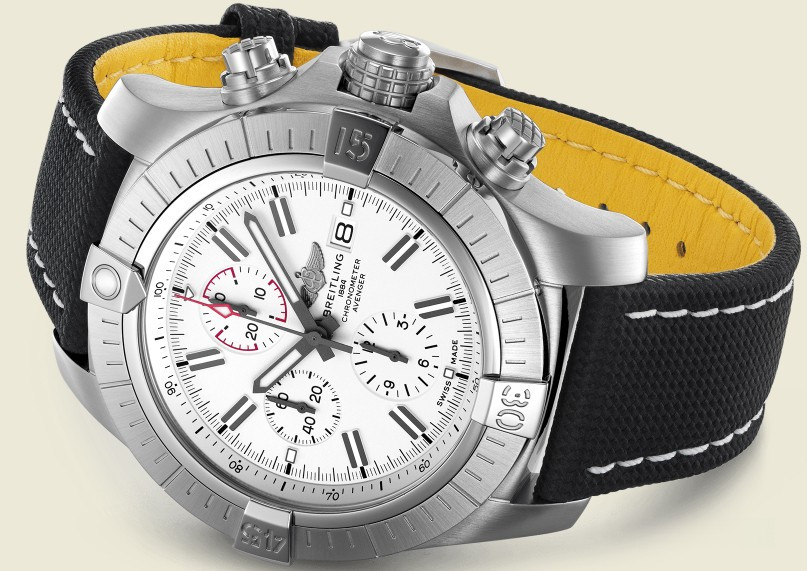 Часы Breitling Super Avenger Chronograph 48 mm представлены в корпусе из нержавеющей стали размером 48 х 17.73 мм и водонепроницаемостью до 300 метров. Внутри корпуса установлен автоматический механизм, Калибр Breitling 13 с запасом хода 48 часов. На белом циферблате отображаются часы, минуты, секунды, дата. Часы комплектуются текстильным ремешком с вставкой из нержавеющей стали. Серия ограничена - 1000 шт.