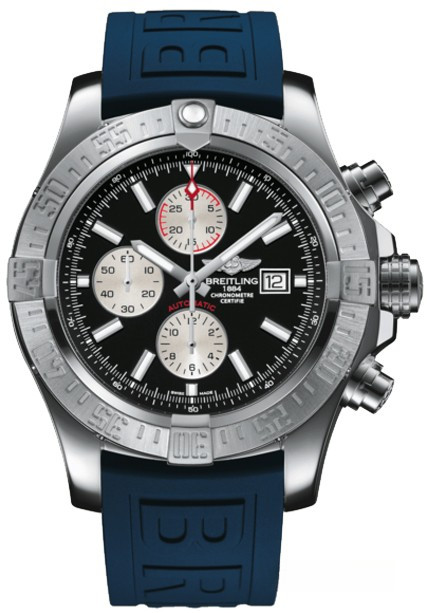 Идеальный спутник для самых экстремальных миссий, хронограф Super Avenger II впечатляющего диаметра 48 мм имеет мощный и крайне профессиональный облик. Его стальной корпус, сохраняющий водонепроницаемость до глубины в 300 м, готов к самым экстремальным подвигам благодаря своей прочной конструкции, заглубленной нажимной кнопке с заглушкой и массивной винтовой заводной головке с нескользящим покрытием. Механизм хронографа с автоподзаводом имеет сертификат Швейцарского института хронометрии (COSC), что подтверждает высшие показатели по точности и надёжности этого шедевра часовой индустрии, это единственный механизм, созданный по международному стандарту. На черном с серебристым циферблате отображаются часы, минуты, секунды и дата. Часы комплектуются каучуковым ремешком с вставкой из нержавеющей стали.