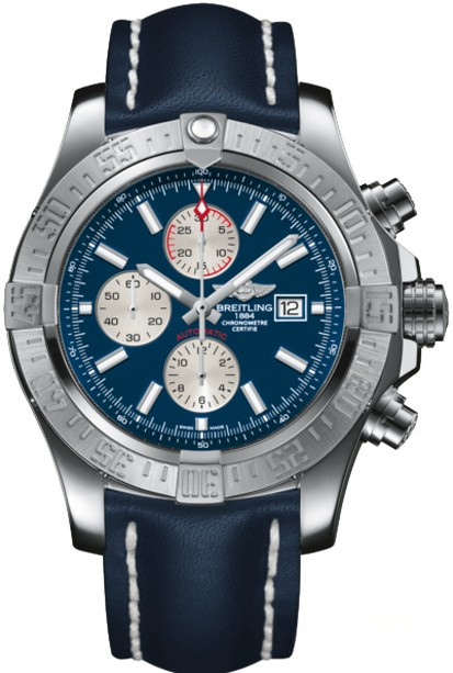 Идеальный спутник для самых экстремальных миссий, хронограф Super Avenger II впечатляющего диаметра 48 мм имеет мощный и крайне профессиональный облик. Его стальной корпус, сохраняющий водонепроницаемость до глубины в 300 м, готов к самым экстремальным подвигам благодаря своей прочной конструкции, заглубленной нажимной кнопке с заглушкой и массивной винтовой заводной головке с нескользящим покрытием. Механизм хронографа с автоподзаводом имеет сертификат Швейцарского института хронометрии (COSC), что подтверждает высшие показатели по точности и надёжности этого шедевра часовой индустрии, это единственный механизм, созданный по международному стандарту. На синем с серебристым циферблате отображаются часы, минуты, секунды и дата. Часы комплектуются кожаным ремешком с вставкой из нержавеющей стали.