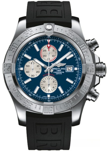 Идеальный спутник для самых экстремальных миссий, хронограф Super Avenger II впечатляющего диаметра 48 мм имеет мощный и крайне профессиональный облик. Его стальной корпус, сохраняющий водонепроницаемость до глубины в 300 м, готов к самым экстремальным подвигам благодаря своей прочной конструкции, заглубленной нажимной кнопке с заглушкой и массивной винтовой заводной головке с нескользящим покрытием. Механизм хронографа с автоподзаводом имеет сертификат Швейцарского института хронометрии (COSC), что подтверждает высшие показатели по точности и надёжности этого шедевра часовой индустрии, это единственный механизм, созданный по международному стандарту. На синем с серебристым циферблате отображаются часы, минуты, секунды и дата. Часы комплектуются каучуковым ремешком с вставкой из нержавеющей стали.