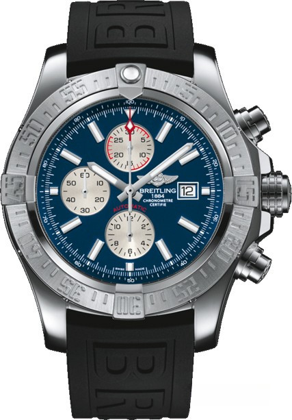 Идеальный спутник для самых экстремальных миссий, хронограф Super Avenger II впечатляющего диаметра 48 мм имеет мощный и крайне профессиональный облик. Его стальной корпус, сохраняющий водонепроницаемость до глубины в 300 м, готов к самым экстремальным подвигам благодаря своей прочной конструкции, заглубленной нажимной кнопке с заглушкой и массивной винтовой заводной головке с нескользящим покрытием. Механизм хронографа с автоподзаводом имеет сертификат Швейцарского института хронометрии (COSC), что подтверждает высшие показатели по точности и надёжности этого шедевра часовой индустрии, это единственный механизм, созданный по международному стандарту. На синем с серебристом циферблате отображаются часы, минуты, секунды и дата. Часы комплектуются каучуковым ремешком с вставкой из нержавеющей стали.
