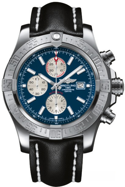 Идеальный спутник для самых экстремальных миссий, хронограф Super Avenger II впечатляющего диаметра 48 мм имеет мощный и крайне профессиональный облик. Его стальной корпус, сохраняющий водонепроницаемость до глубины в 300 м, готов к самым экстремальным подвигам благодаря своей прочной конструкции, заглубленной нажимной кнопке с заглушкой и массивной винтовой заводной головке с нескользящим покрытием. Механизм хронографа с автоподзаводом имеет сертификат Швейцарского института хронометрии (COSC), что подтверждает высшие показатели по точности и надёжности этого шедевра часовой индустрии, это единственный механизм, созданный по международному стандарту. На синем с серебристым циферблате отображаются часы, минуты, секунды и дата. Часы комплектуются кожаным ремешком с вставкой из нержавеющей стали.