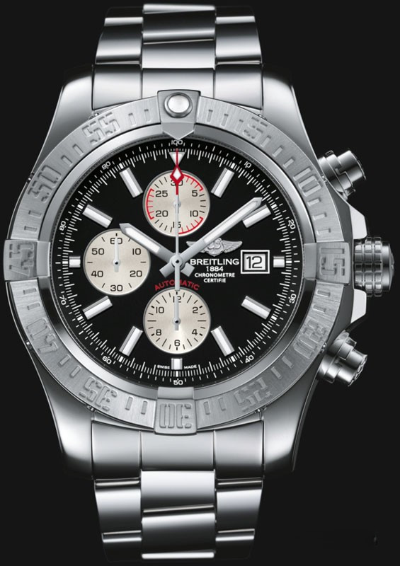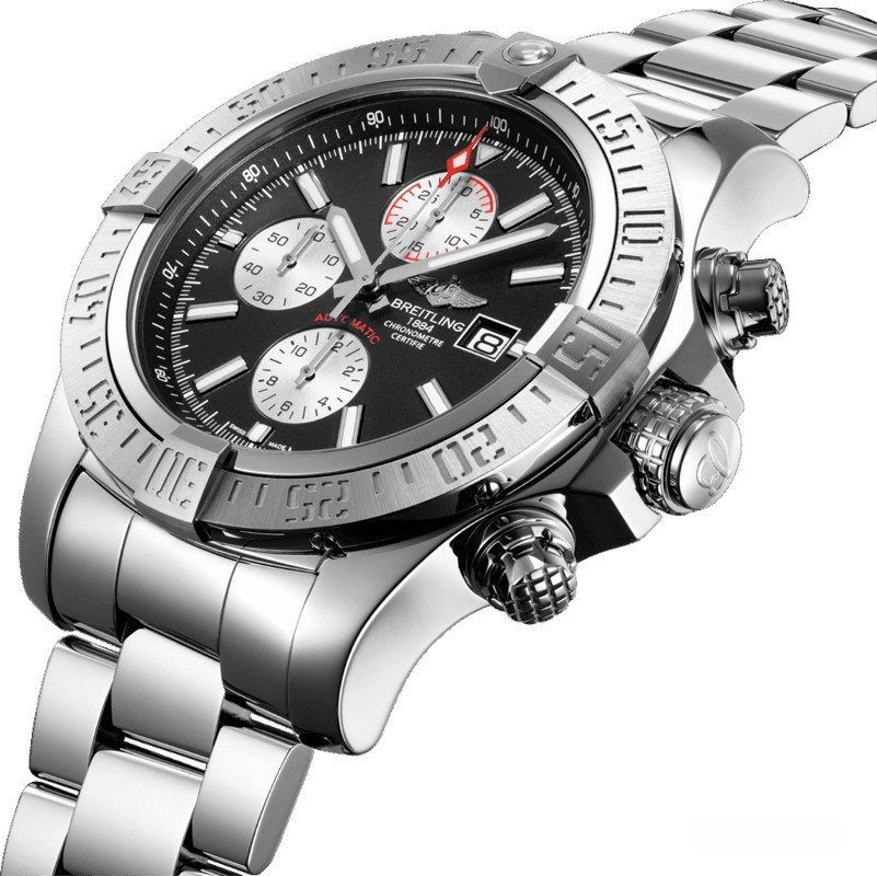 Идеальный спутник для самых экстремальных миссий, хронограф Super Avenger II впечатляющего диаметра 48 мм имеет мощный и крайне профессиональный облик. Его стальной корпус, сохраняющий водонепроницаемость до глубины в 300 м, готов к самым экстремальным подвигам благодаря своей прочной конструкции, заглубленной нажимной кнопке с заглушкой и массивной винтовой заводной головке с нескользящим покрытием. Механизм хронографа с автоподзаводом имеет сертификат Швейцарского института хронометрии (COSC), что подтверждает высшие показатели по точности и надёжности этого шедевра часовой индустрии, это единственный механизм, созданный по международному стандарту. На черном с серебристым циферблате отображаются часы, минуты, секунды и дата. Часы комплектуются стальным браслетом.