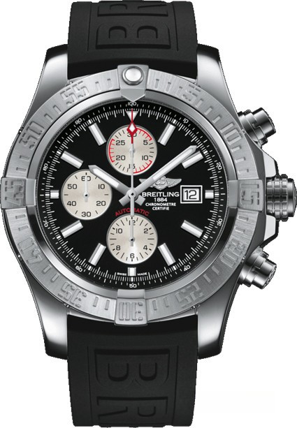 Идеальный спутник для самых экстремальных миссий, хронограф Super Avenger II впечатляющего диаметра 48 мм имеет мощный и крайне профессиональный облик. Его стальной корпус, сохраняющий водонепроницаемость до глубины в 300 м, готов к самым экстремальным подвигам благодаря своей прочной конструкции, заглубленной нажимной кнопке с заглушкой и массивной винтовой заводной головке с нескользящим покрытием. Механизм хронографа с автоподзаводом имеет сертификат Швейцарского института хронометрии (COSC), что подтверждает высшие показатели по точности и надёжности этого шедевра часовой индустрии, это единственный механизм, созданный по международному стандарту. На черном с серебристым циферблате отображаются часы, минуты, секунды и дата. Часы комплектуются каучуковым ремешком с вставкой из нержавеющей стали.