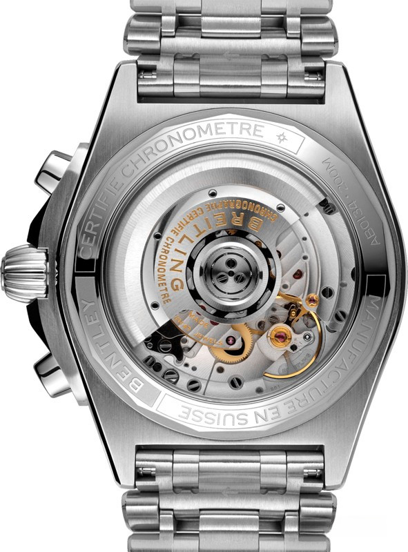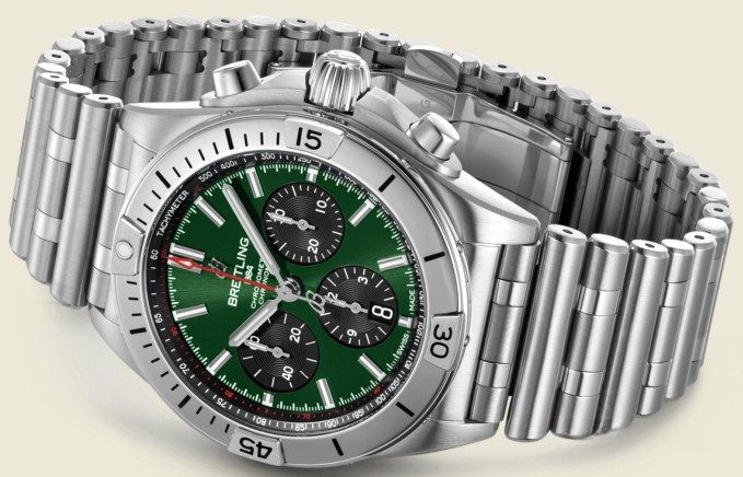Часы Breitling Chronomat B01 42 Bentley представлены в корпусе из нержавеющей стали размером 42 х 15.1 мм и водонепроницаемостью до 200 метров. Внутри корпуса установлен автоматический механизм, Калибр Breitling 1 с запасом хода 70 часов. На зеленом с черным циферблате отображаются часы, минуты, секунды, дата, тахиметр, накопители хронографа. Часы комплектуются браслетом из нержавеющей стали.