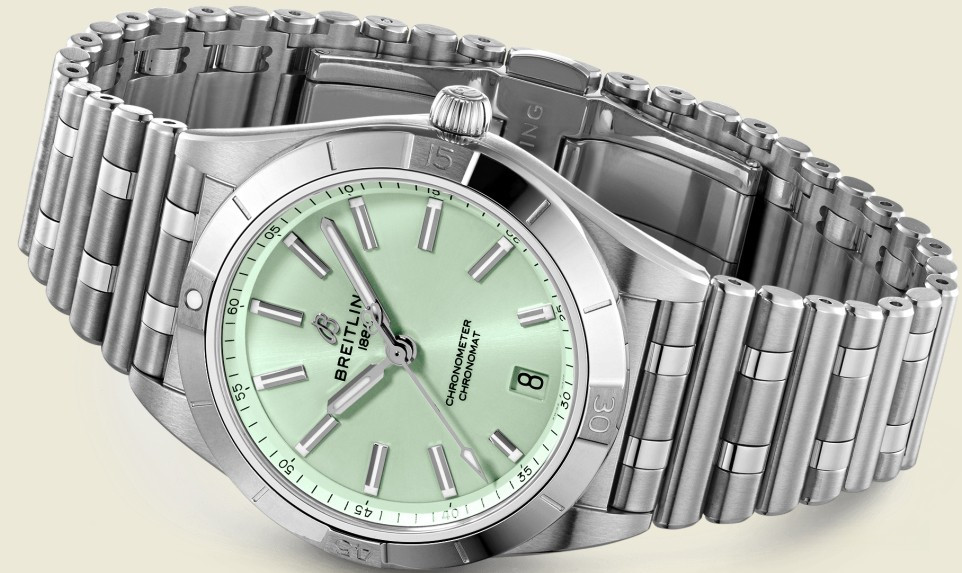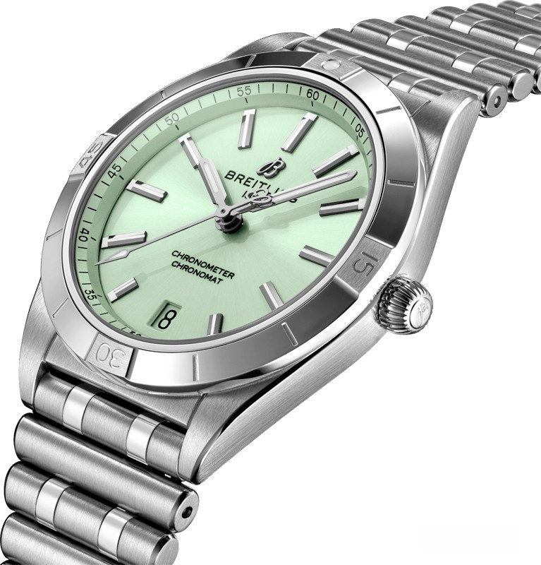 Часы Breitling Chronomat Automatic 36 представлены в корпусе из нержавеющей стали размером 36 х 10.01 мм водонепроницаемостью 100 метров. Внутри корпуса установлен автоматический механизм, Калибр Breitling 10, обладающий запасом хода 42 часа. На зеленом циферблате отображаются часы, минуты, секунды, дата. Часы поставляются на браслете из нержавеющей стали.