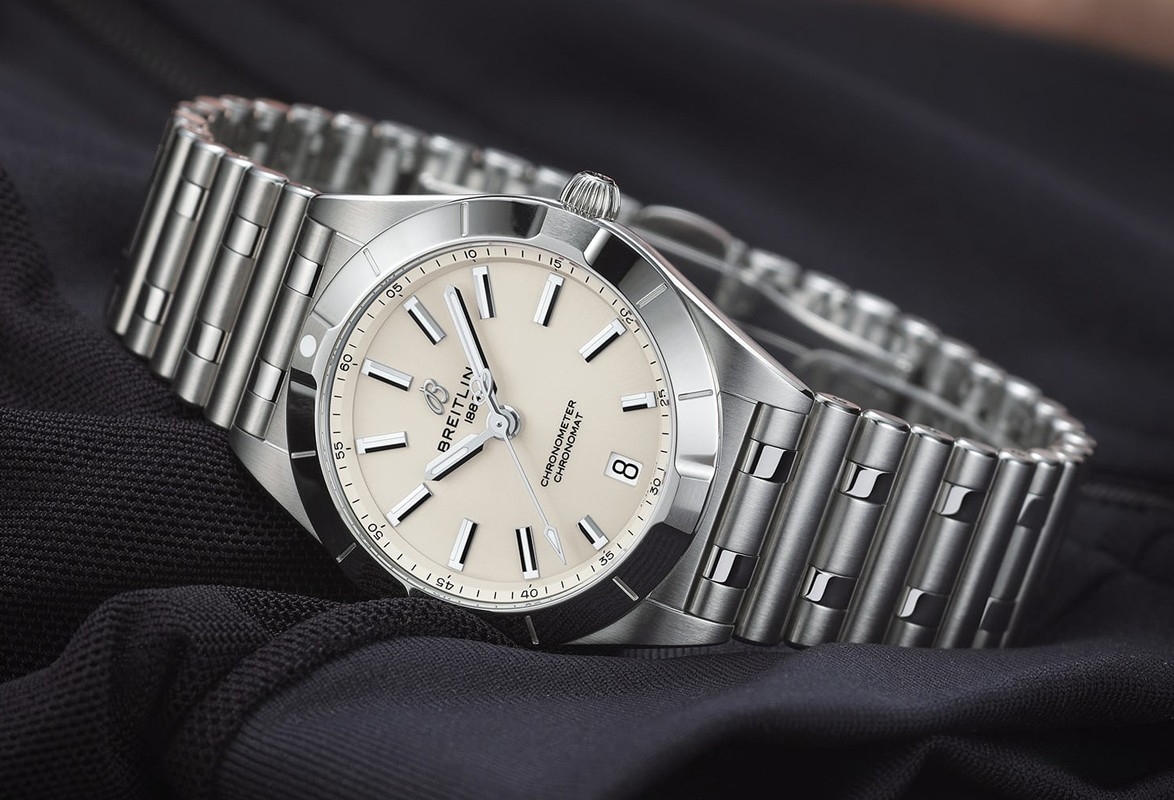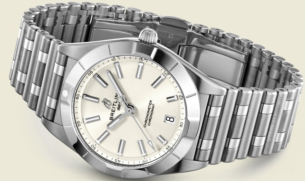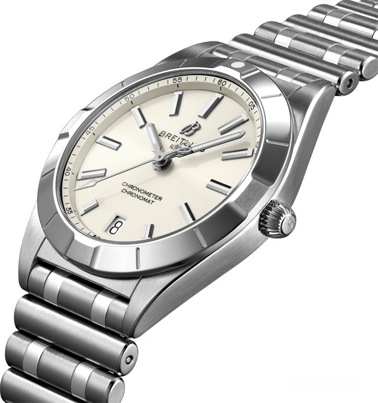 Часы Breitling Chronomat SuperQuartz 32 представлены в корпусе из нержавеющей стали размером 32 х 8.54 мм водонепроницаемостью 100 метров. Внутри корпуса установлен кварцевый механизм, Калибр Breitling 77. На белом циферблате отображаются часы, минуты, секунды, дата. Часы поставляются на браслете из нержавеющей стали.