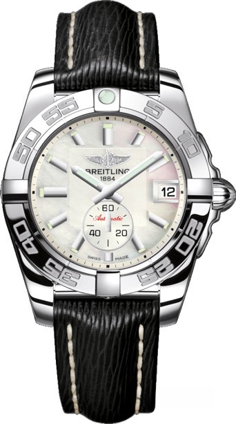 Часы Breitling Galactic 36 Automatic представлены в корпусе размером 36 х 12.3 мм из нержавеющей стали с водонепроницаемостью до 100 метров. Внутри корпуса установлен автоматический механизм, Калибр Breitling 37, обладающий запасом хода 42 часа. На белом жемчужном циферблате отображаются часы, минуты, секунды, дата. Часы поставляются на кожаном ремешке с вставкой из нержавеющей стали.