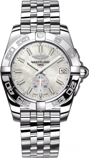 Часы Breitling Galactic 36 Automatic представлены в корпусе размером 36 х 12.3 мм из нержавеющей стали с водонепроницаемостью до 100 метров. Внутри корпуса установлен автоматический механизм, Калибр Breitling 37, обладающий запасом хода 42 часа. На белом жемчужном циферблате отображаются часы, минуты, секунды, дата. Часы поставляются на браслете из нержавеющей стали.