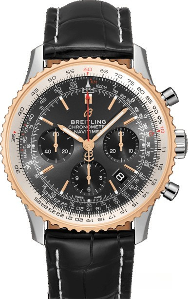 Часы Breitling Navitimer 1 B01 Chronograph 43 представлены в корпусе размером 43 х 14.22 мм из нержавеющей стали и розового золота 18к с водонепроницаемостью до 30 метров. Внутри корпуса установлен автоматический механизм, обладающий запасом хода 70 часов. На черном циферблате отображаются часы, минуты, секунды, дата, тахиметр, накопители хронографа. Часы поставляются на ремешке из кожи аллигатора с вставкой из нержавеющей стали.