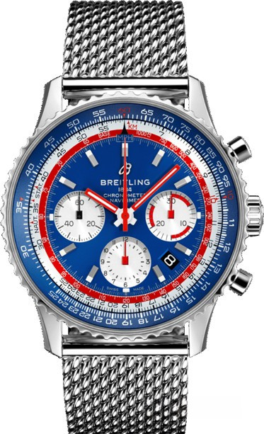 Часы Breitling Navitimer 1 B01 Chronograph 43 Swissair Editions представлены в корпусе из нержавеющей стали размером 43 х 14.25 мм и водонепроницаемостью 30 метров. Внутри корпуса установлен автоматический механизм, Калибр Breitling 01, обладающий запасом хода 70 часов. На синем с белым циферблате отображаются часы, минуты, секунды, дата, тахиметр, накопители хронографа. Часы поставляются на браслете из нержавеющей стали.