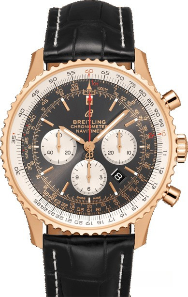 Часы Breitling Navitimer 1 B01 Chronograph 46 представлены в корпусе размером 46 х 14.51 мм из розового золота 18к с водонепроницаемостью до 30 метров. Внутри корпуса установлен автоматический механизм, обладающий запасом хода 70 часов. На сером с белым циферблате отображаются часы, минуты, секунды, дата, тахиметр, накопители хронографа. Часы поставляются на ремешке из кожи аллигатора с вставкой из розового золота 18к.