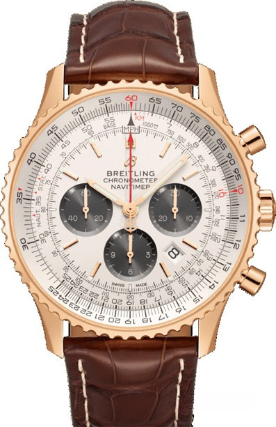 Часы Breitling Navitimer 1 B01 Chronograph 46 представлены в корпусе размером 46 х 14.51 мм из розового золота 18к с водонепроницаемостью до 30 метров. Внутри корпуса установлен автоматический механизм, обладающий запасом хода 70 часов. На серебристом с серым циферблате отображаются часы, минуты, секунды, дата, тахиметр, накопители хронографа. Часы поставляются на ремешке из кожи аллигатора с вставкой из розового золота 18к.