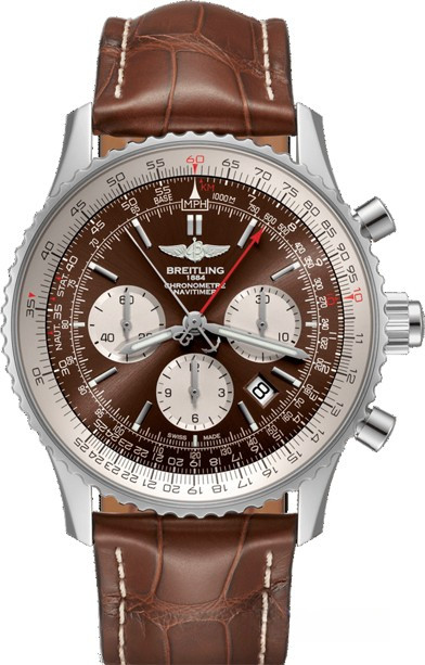 Часы Breitling Navitimer 1 New B03 Chronograph Rattrapante 45 представлены в корпусе из нержавеющей стали размером 45 х 15.73 мм и водонепроницаемостью 30 метров. Внутри корпуса установлен автоматический механизм, Калибр Breitling B03, обладающий запасом хода 70 часов. На коричневом с серебристым циферблате отображаются часы, минуты, секунды, дата, накопители хронографа, тахиметр. Часы поставляются на ремешке из кожи аллигатора с вставкой из нержавеющей стали.