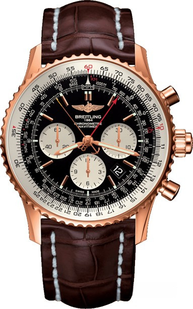 Часы Breitling Navitimer 1 New B03 Chronograph Rattrapante 45 представлены в корпусе из розового золота 18к размером 45 х 15.73 мм и водонепроницаемостью 30 метров. Внутри корпуса установлен автоматический механизм, Калибр Breitling B03, обладающий запасом хода 70 часов. На черном с белым циферблате отображаются часы, минуты, секунды, дата, накопители хронографа, тахиметр. Часы поставляются на ремешке из кожи аллигатора с вставкой из розового золота 18к.