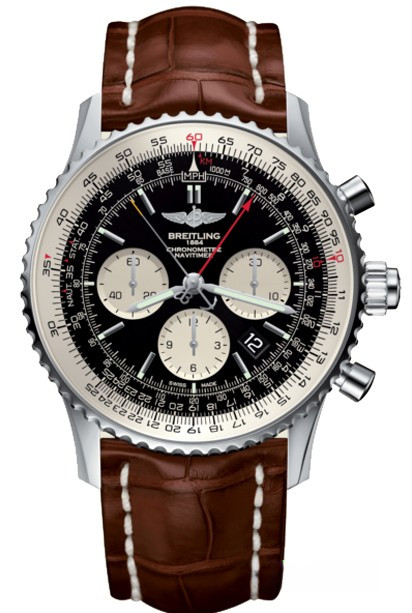 Navitimer Rattrapante от швейцарской часовой компании Breitling выпускается в корпусе из нержавеющей стали. Новинка имеет круглый корпус, диаметром 45 мм, водонепроницаемый до 30 метров. Двунаправленный рифленый вращающийся безель, позволяющий использовать круглую логарифмическую линейку. На торце рифленой заводной головки, расположенной на 3 часах, имеется сплит-пушер, на котором выгравирован логотип бренда Breitling. Пушеры хронографа размещены на 2 и 4 часах. Сапфировое стекло установлено на передней стороне часового корпуса (выпуклое, с двусторонним антибликовым покрытием) и на его задней крышке. Циферблат черного цвета со счетчиками белого цвета, с продолговатыми накладными часовыми индексами и точечными маркерами, которые, как и часовая и минутная стрелки, покрыты белым люминесцентным составом. Модель оснащена мануфактурным швейцарским автоматическим механизмом Bretiling B03, с модулем сплит-хронографа (состоящего из 28 деталей и извлекаемого из калибра одним блоком, что существенно облегчает его техническое обслуживание и ремонт), балансовой частотой 28800 полуколебаний в час (4 гц), 70-часовым запасом хода, официально сертифицированным COSC (Contrôle Officiel Suisse des Chronomètres) в качестве хронометра, с функциями индикации часов, минут (посредством соответствующих центральных стрелок), секунд (на соответствующем малом боковом циферблате, расположенном на 9 часах), даты (посредством соответствующего цифрового указателя в прямоугольной апертуре, расположенной между 4 и 5 часами), а также с хронографом (центральная секундная стрелка красного цвета с объемным изображением логотипа бренда Breitling на ее противовесе, центральная секундная сплит-стрелка серебристого цвета с объемным изображением якоря на ее противовесе, круглый аналоговый 30-минутный счетчик, расположенный на 3 часах и круглый аналоговый 12-часовый счетчик, расположенный на 6 часах). Поставляется на ремешке из кожи аллигатора с вставкой из нержавеющей стали.