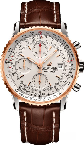 Часы Breitling Navitimer Chronograph 41 представлены в корпусе из нержавеющей стали и розового золота 18к размером 41 х 14.44 мм и водонепроницаемостью 30 метров. Внутри корпуса установлен автоматический механизм, Калибр Breitling 13, обладающий запасом хода 48 часов. На белом циферблате отображаются часы, минуты, секунды, дата, накопители хронографа, тахиметр. Часы поставляются на ремешке из кожи аллигатора с вставкой из нержавеющей стали.