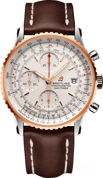 Часы Breitling Navitimer Chronograph 41 представлены в корпусе из нержавеющей стали и розового золота 18к размером 41 х 14.44 мм и водонепроницаемостью 30 метров. Внутри корпуса установлен автоматический механизм, Калибр Breitling 13, обладающий запасом хода 48 часов. На белом циферблате отображаются часы, минуты, секунды, дата, накопители хронографа, тахиметр. Часы поставляются на кожаном ремешке из с вставкой из нержавеющей стали.