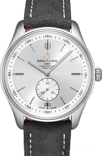Часы Breitling Premier Automatic 40 представлены в корпусе из нержавеющей стали размером 40 х 11.4 мм. Внутри корпуса установлен автоматический механизм, Калибр Breitling 37, обладающий запасом хода 38 часов. На серебристом циферблате отображаются часы, минуты, секунды. Часы поставляются на кожаном ремешке с вставкой из нержавеющей стали. Водонепроницаемость корпуса составляет 100 метров.