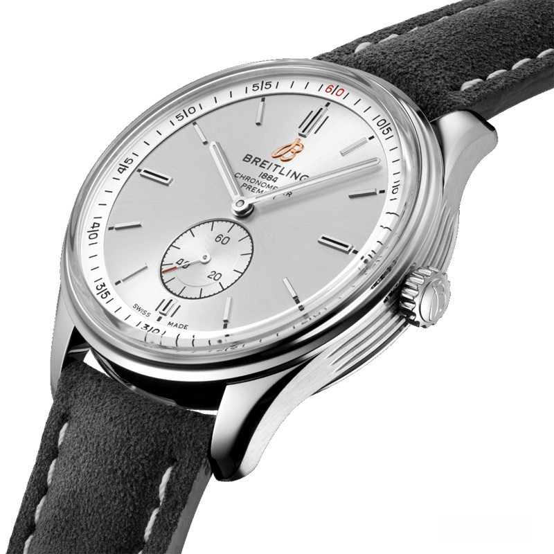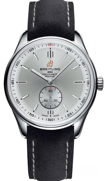 Часы Breitling Premier Automatic 40 представлены в корпусе из нержавеющей стали размером 40 х 11.4 мм. Внутри корпуса установлен автоматический механизм, Калибр Breitling 37, обладающий запасом хода 38 часов. На серебристом циферблате отображаются часы, минуты, секунды. Часы поставляются на кожаном ремешке с вставкой из нержавеющей стали. Водонепроницаемость корпуса составляет 100 метров.