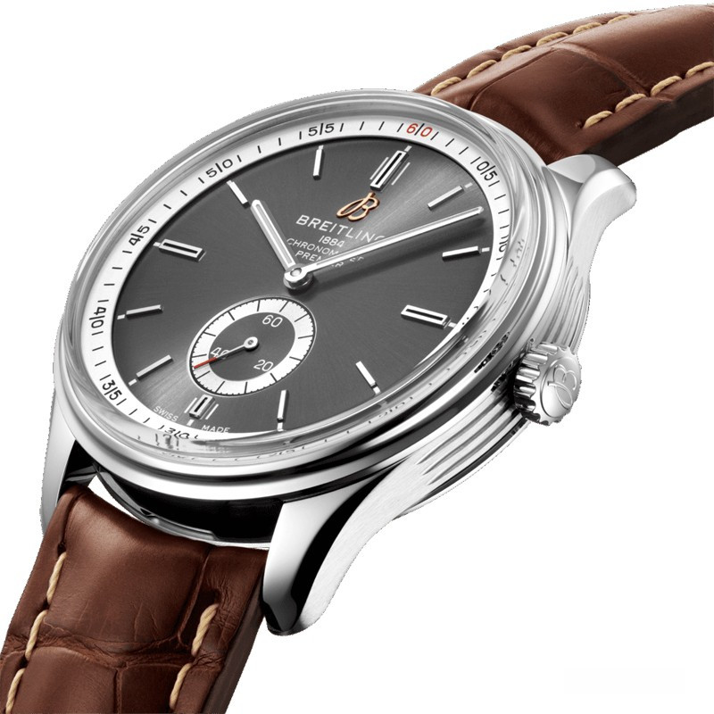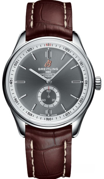 Часы Breitling Premier Automatic 40 представлены в корпусе из нержавеющей стали размером 40 х 11.4 мм. Внутри корпуса установлен автоматический механизм, Калибр Breitling 37, обладающий запасом хода 38 часов. На сером циферблате отображаются часы, минуты, секунды. Часы поставляются на ремешке из кожи аллигатора с вставкой из нержавеющей стали. Водонепроницаемость корпуса составляет 100 метров.
