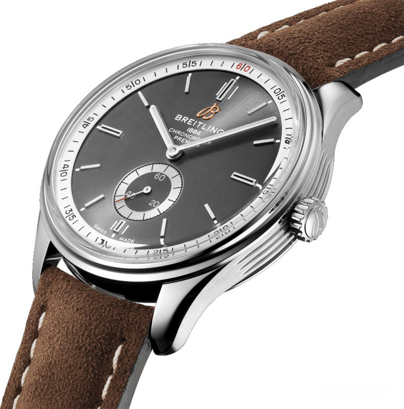 Часы Breitling Premier Automatic 40 представлены в корпусе из нержавеющей стали размером 40 х 11.4 мм. Внутри корпуса установлен автоматический механизм, Калибр Breitling 37, обладающий запасом хода 38 часов. На сером циферблате отображаются часы, минуты, секунды. Часы поставляются на кожаном ремешке с вставкой из нержавеющей стали. Водонепроницаемость корпуса составляет 100 метров.