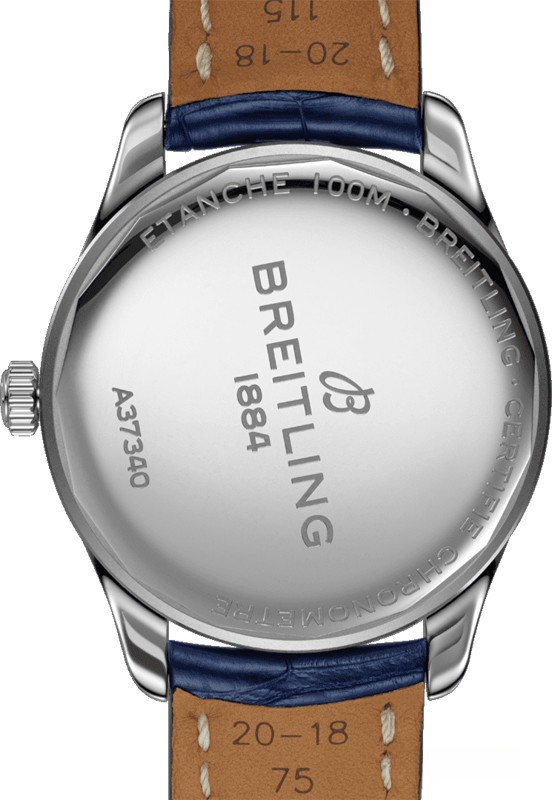 Часы Breitling Premier Automatic 40 представлены в корпусе из нержавеющей стали размером 40 х 11.4 мм. Внутри корпуса установлен автоматический механизм, Калибр Breitling 37, обладающий запасом хода 38 часов. На синем циферблате отображаются часы, минуты, секунды. Часы поставляются на ремешке из кожи аллигатора с вставкой из нержавеющей стали. Водонепроницаемость корпуса составляет 100 метров.