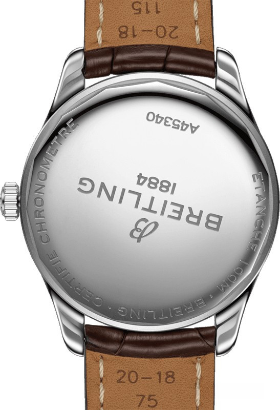 Часы Breitling Premier Automatic Day Date 40 представлены в корпусе из нержавеющей стали размером 40 х 11.4 мм. Внутри корпуса установлен автоматический механизм, Калибр Breitling 45, обладающий запасом хода 38 часов. На серебристом циферблате отображаются часы, минуты, секунды, дата, день недели. Часы поставляются на ремешке из кожи аллигатора с вставкой из нержавеющей стали. Водонепроницаемость корпуса составляет 100 метров.