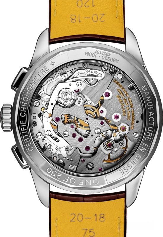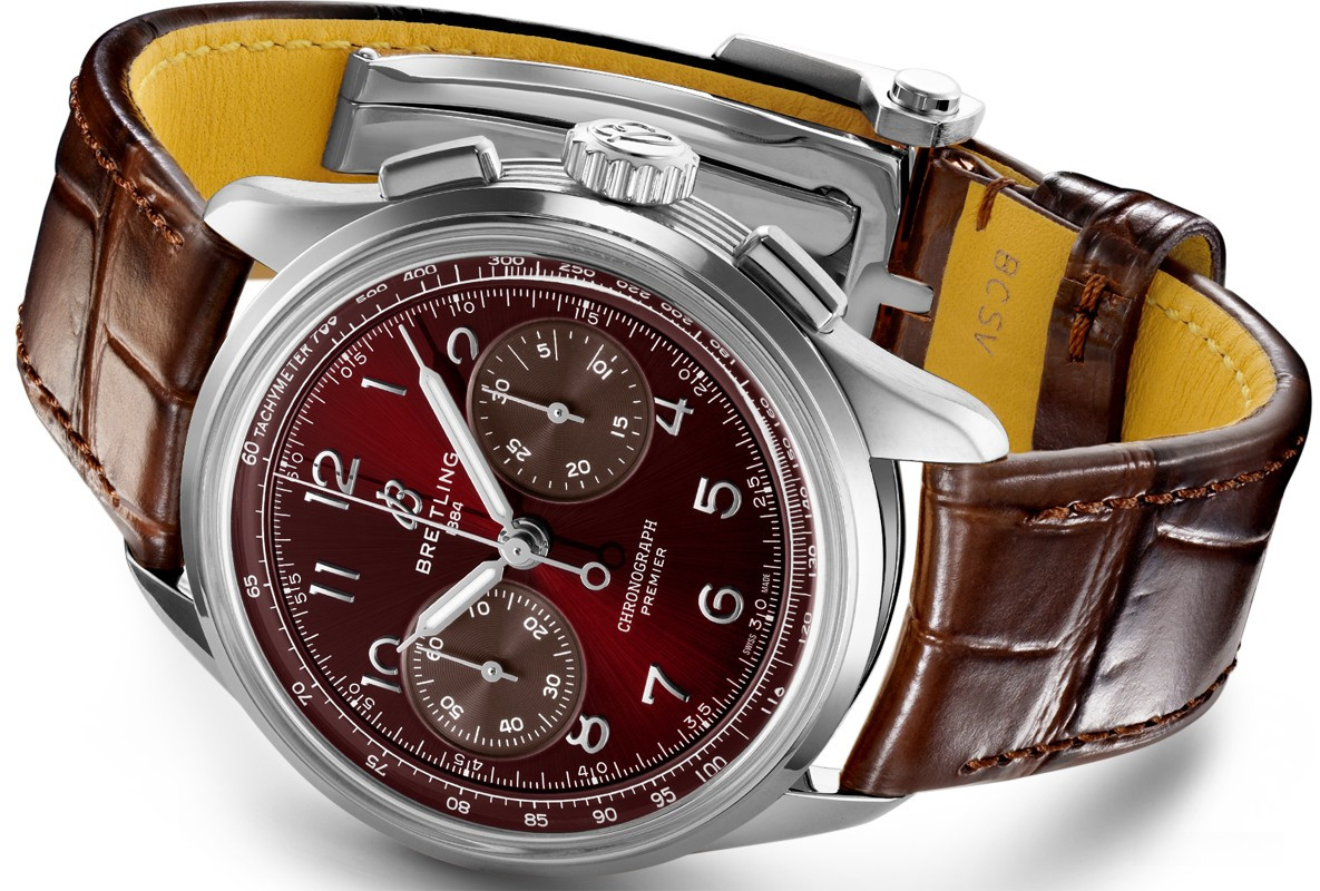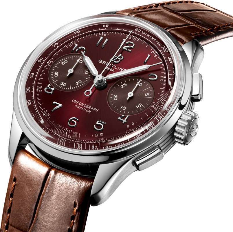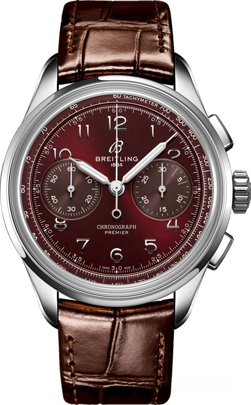 Часы Breitling Premier B09 Chronograph 40 представлены в корпусе из нержавеющей стали размером 40 х 13 мм водонепроницаемостью 100 метров. Внутри корпуса находится механизм с ручным заводом, Калибр Breitling B09, обладающий запасом хода 70 часов. На коричневом циферблате отображаются часы, минуты, секунды, тахиметр, накопители хронографа. Часы поставляются на ремешке из кожи аллигатора с застежкой из нержавеющей стали.