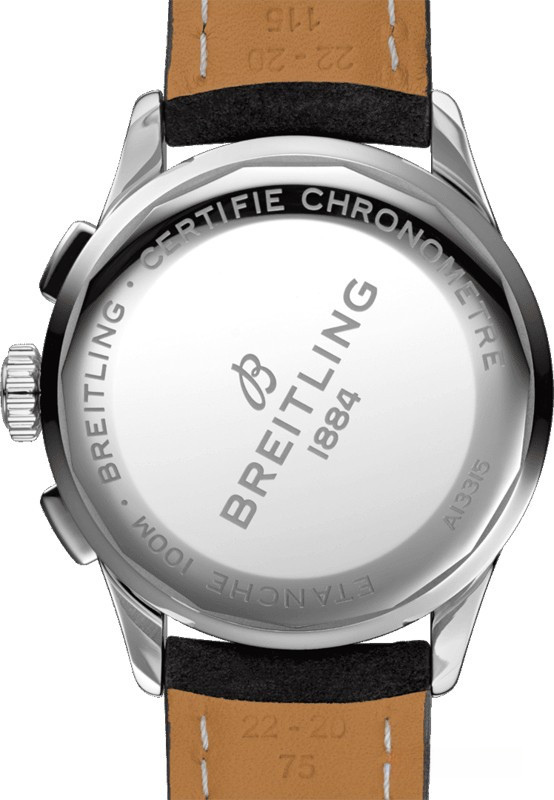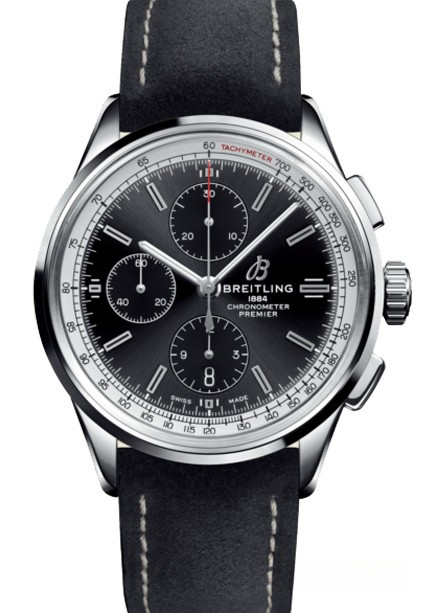Часы Breitling Premier Chronograph 42 представлены в корпусе из нержавеющей стали размером 42 х 13.8 мм. Внутри корпуса установлен автоматический механизм, Калибр Breitling 13, обладающий запасом хода 48 часов. На черном циферблате отображаются часы, минуты, секунды, дата, тахиметр, накопители хронографа. Часы поставляются на кожаном ремешке с вставкой из нержавеющей стали. Водонепроницаемость корпуса составляет 100 метров.