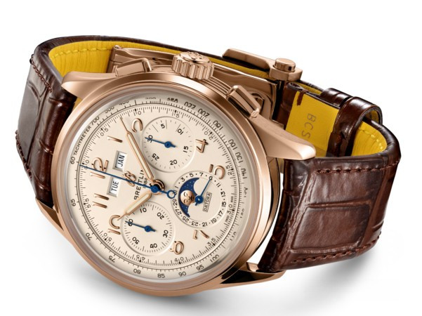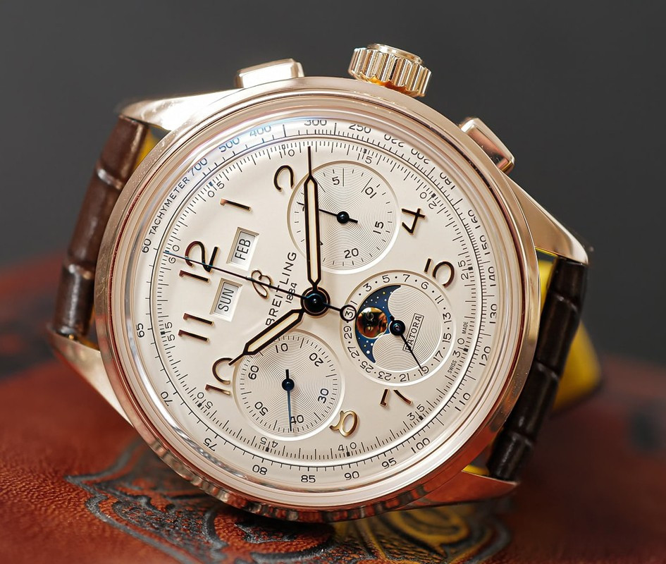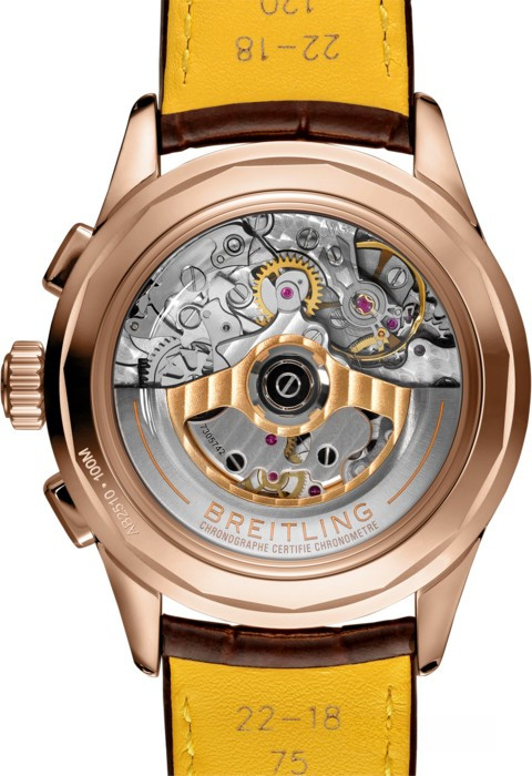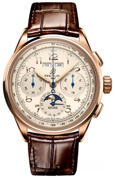 Часы Breitling Heritage Premier B25 Datora представлены в корпусе из розового золота 18к размером 42 х 15.3 мм водонепроницаемостью 100 метров. Внутри корпуса находится автоматический механизм, Калибр Breitling B25, обладающий запасом хода 48 часов. На серебристом циферблате отображаются часы, минуты, секунды, дата, день недели, месяц, фаза луны, тахиметр. Часы поставляются на ремешке из кожи аллигатора с вставкой из розового золота 18к.