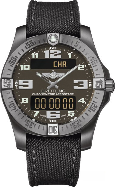 Часы Breitling Professional Aerospace Evo представлены в корпусе из титана с покрытием DLC размером 43 мм и водонепроницаемостью до 100 метров. Внутри корпуса установлен кварцевый механизм, Калибр Breitling 79. На сером циферблате отображаются часы, минуты, секунды, дата, день недели, таймер. Часы комплектуются текстильным ремешком с вставкой из титана.