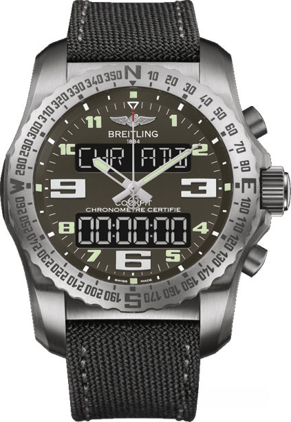 Идеальный инструмент для пилота, многофункциональный электронный хронограф Cockpit B50 отличается титановым корпусом, который оснащен аналоговым и цифровым дисплеями механизма SuperQuartz™, специально разработанного Breitling для авиации. Он создан для сопровождения самых различных миссий, а в число его инноваций входят облегчающий восприятие информации дисплей, высочайшая простота в обращении и широкий набор функций, включающий электронный тахометр и служащее для записи продолжительности полета устройство «хронолет», которое запоминает время и дату вылета и прибытия.