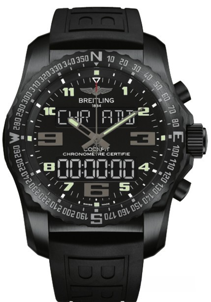 Идеальный инструмент для пилота, многофункциональный электронный хронограф Cockpit B50 отличается титановым корпусом, который оснащен аналоговым и цифровым дисплеями механизма SuperQuartz™, специально разработанного Breitling для авиации. Он создан для сопровождения самых различных миссий, а в число его инноваций входят облегчающий восприятие информации дисплей, высочайшая простота в обращении и широкий набор функций, включающий электронный тахометр и служащее для записи продолжительности полета устройство «хронолет», которое запоминает время и дату вылета и прибытия.