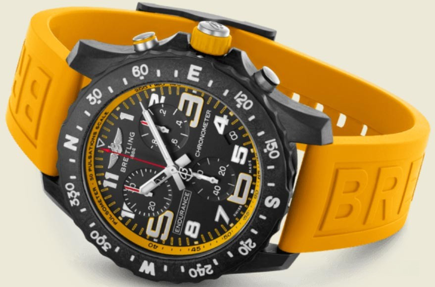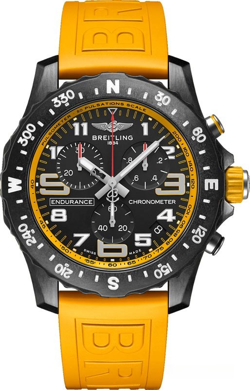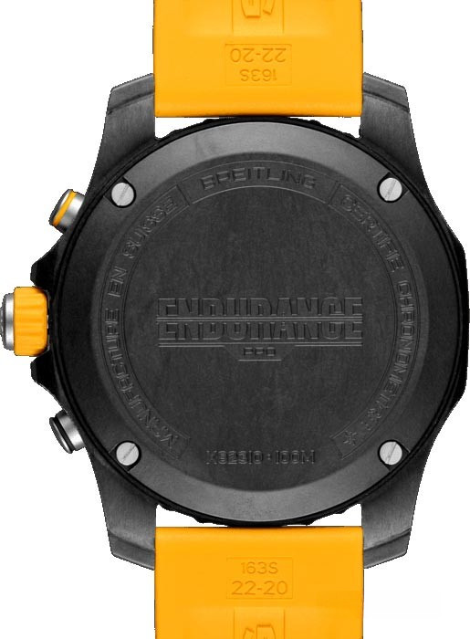 Часы Breitling Professional Endurance Pro представлены в корпусе размером 44 мм из керамики водонепроницаемостью 100 метров. Внутри корпуса установлен суперкварцевый механизм, Калибр Breitling 82. На черном циферблате отображаются часы, минуты, секунды, дата, накопители хронографа, пульсомер. Часы поставляются на каучуковом ремешке с вставкой из нержавеющей стали.