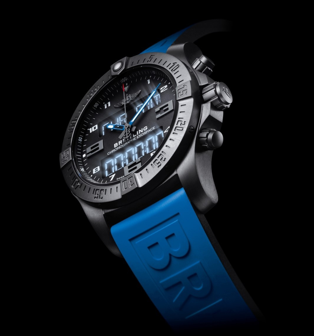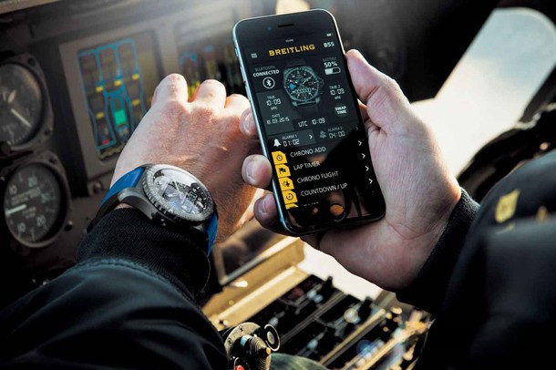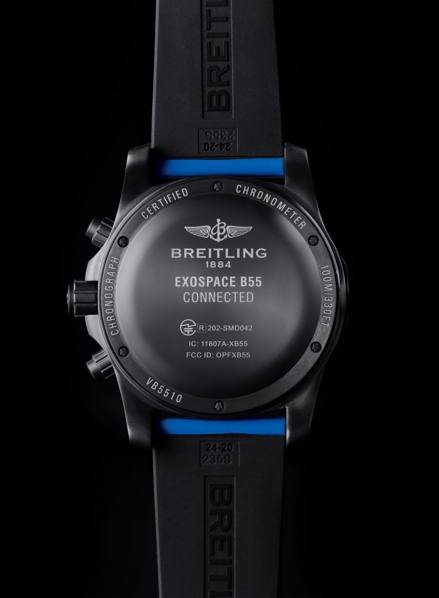 B55 Connected - это часы с хронографом, которые представляют новое поколение часовой индустрии, подключаясь к различным цифровым приборам. В этой часовой разработке хронограф, естественно, главная идея, а вот подключение к смартфону создано с целью упрощения его использования. Смартфон и хронограф выполняют взаимовыгодные функции, тем самым дополняют друг друга, делают друг друга лучше. Корпус инновационной модели изготовлен из титана. Для фиксации данного прибора на запястье своего владельца Breitling укомплектовал часы прочным каучуковым браслетом. Есть возможность заряжать представляемую модель от сети с помощью USB-разъема. Механизм модели прошел сертификацию COSC.
