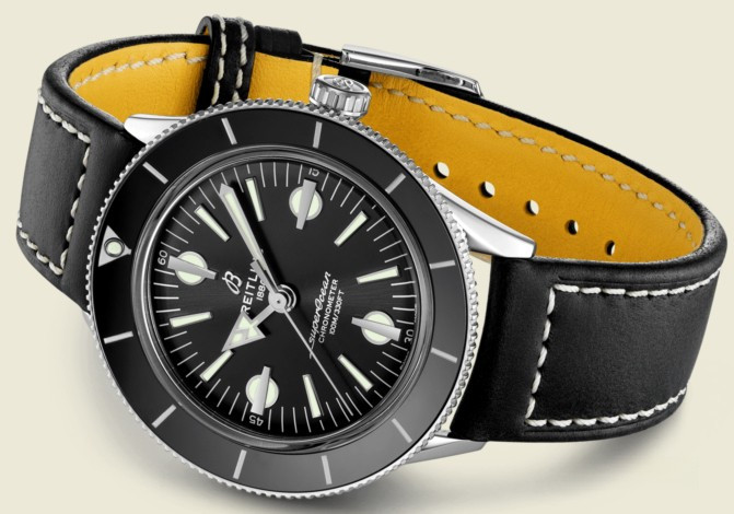 Часы Breitling Superocean Heritage 57 представлены в корпусе из нержавеющей стали размером 42 мм и водонепроницаемостью до 100 метров. Внутри корпуса установлен автоматический механизм, Калибр Breitling 10 с запасом хода 42 часа На черном циферблате отображаются часы, минуты, секунды. Часы комплектуются кожаным ремешком с вставкой из нержавеющей стали.